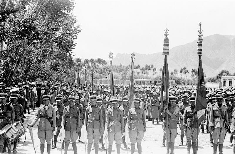 ཆུ་བྱི་(༡༩༡༢)ལོ་ནས་བཟུང་མདོ་སྨད་ཁུལ་ས་སྲུང་རྒྱ་ཆེ་ཁག་བགོས་ཀྱིས་གཏོང་དགོས་པ་དང་། ལྷ་སར་གཏན་སྡོད་ཀྱི་ཏཱལའི་བླ་མའི་སྐུ་སྲུང་དམག་སྒར། གྲོང་ཁྱེར་བདེ་འཇགས་སྲུང་དམག་བཅས་ཀྱི་དགོས་མཁོར་གཞིགས་ཏེ་དེ་སྔའི་བོད་དམག་སུམ་སྟོང་ཐམ་པའི་ཐོག་འདོན་དམག་ཉིས་སྣ། བཞི་སྣ། བརྒྱད་སྣ། བཅུ་གཉིས་དྲུག་སྣ་(གཞུང་རྒྱུགས་རྐང་བཅུ་གཉིས་དང་། སྒེར་ཆོས་འདོན་དྲུག་ལ་ཟེར་) གཟིམ་པ་ལྡིང་དཔོན་གྱི་དམག་རྟེན། གྲོང་དྲག་དམག་དཔུང་བཅས་བསྡོམ་ཀ་དང་སྐུ་སྲུང་དམག་སྒར་ནས་མ་དང་གྲོང་དྲག་དམག་སྒར་བར་གསར་འཛུགས་འཕར་སྣོན་བྱས་ཤིང་། དམག་རྩེད་ནི་དེ་སྔ་དབྱིན་ཇིའི་སྐད་བརྡའི་དམག་རྩེད་ཡིན་རུང་། དེ་རྗེས་བོད་སྐད་དུ་བསྒྱུར་བ་དང་། ཀ་དང་སྐུ་སྲུང་དམག་སྒར་ཙམ་མ་གཏོགས་དེ་བྱིངས་དམག་སྒར་ཚང་མའི་གྱོན་ཆས་བོད་ལུགས་ཞེ་གཅིག་ཡིན། དམག་མི་གསར་འཛུགས་བྱེད་ཕྱོགས་དང་། རྣམ་ཀུན་འགོ་དམངས་སོ་སོའི་སྒྲིག་སྲོལ། གོ་བབ་ལམ་ལུགས། ཕྱོགས་ཐོན་སྐབས་ཉིན་ལྟར་ཐོན་སྔ་རྟིང་གི་སྒྲིགས་འཛུགས་ལྡན་པའི་སྒོ་ནས་ཤར་བསྐྱོད་བྱེད་པ་ལས། ལམ་འཁེལ་ཡུལ་འབྲོག་གང་སར་དམག་དམངས་རང་དགར་འགྲོ་བསྐྱོད་མི་ཆོག་པ་སོགས་སྔར་ནས་སྒྲིགས་ལམ་ཡོད་རུང་། ཕྱིས་དམག་ཁྲིམས་གནོན་འདོམས་དང་། དམག་རྩལ་སྦྱོང་བརྡར་སོགས་དུས་བསྟུན་གསར་བཅོས་མ་གནང་མཐུ་མེད་ཀྱིས་རབ་བྱུང་བཅུ་དྲུག་པའི་ལྕགས་སྟག་༡༩༥༠ལོ་དམག་ཁྲིམས་དོན་ཚན་སུམ་ཅུ་སོ་ལྔ་གསར་སྒྲིག་བྱས་པ་དང་། དེ་སྔ་དབུས་གཙང་མདའ་དཔོན་སོ་སོར་ཕོགས་རྟེན་མདའ་གཞིས་རེ་ཡོད་ཀྱང་། ཕྱིས་མདའ་དཔོན་རིམ་འཕར་ལ་བརྟེན་མདའ་དཔོན་རེར་ལོ་རེ་ཕོགས་དངུལ་སྲང་དགུ་བརྒྱ་རེ་བསྩལ་ཏེ་མདའ་གཞིས་སོ་སོར་སྤྱི་འགྲེའི་འབབ་བཟོ་མཛད།