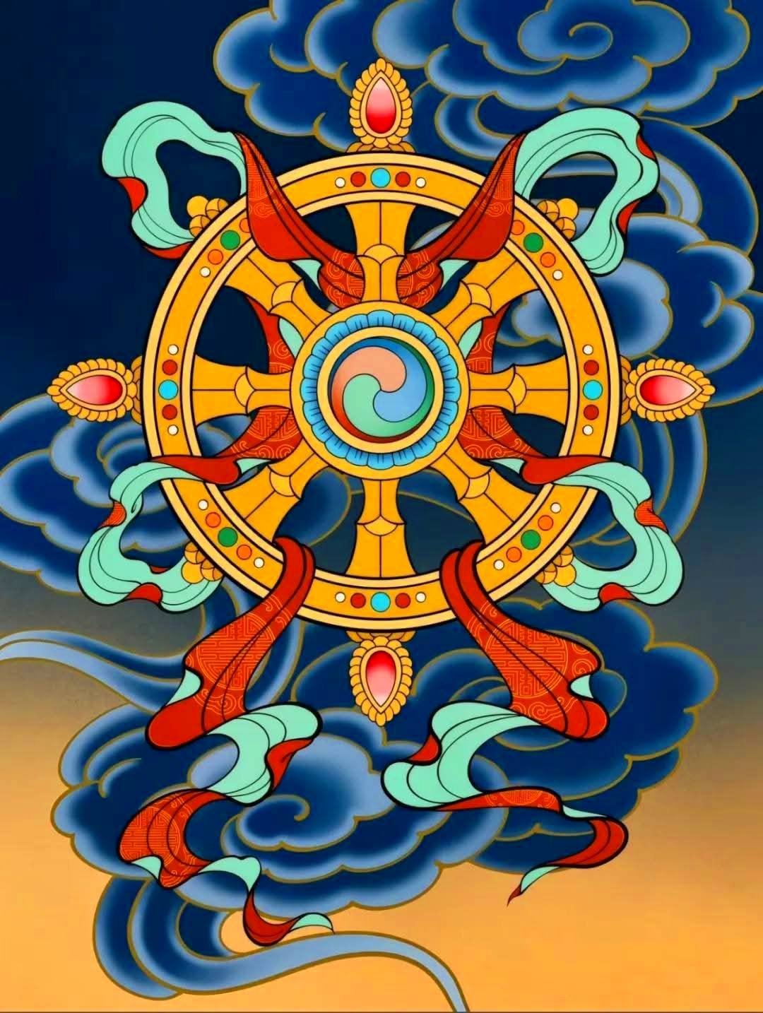 དབང་བསྒྱུར་འཁོར་ལོ། སྲིད་པའི་དྲ་བ་ཉོན་མོངས་པའི་རང་བཞིན་རྩད་ནས་གཅོད་པའི་འཁོར་ལོ་ཞབས་ལ་ཕུལ་བས་ཕ་རོལ་གྱི་རྒོལ་བ་ཐམས་ཅད་ཟིལ་གྱིས་གནོན་ཏེ་ཐེག་གསུམ་དམ་པའི་ཆོས་ཀྱི་འཁོར་ལོ་ཡོངས་སུ་བསྐོར་བས་གདུལ་བྱའི་རྒྱུད་འདུལ་བ་དང་། དེ་ལྟར་རྟགས་བརྒྱད་ཕུལ་བས་རང་གཞན་ཐམས་ཅད་བཀྲ་ཤིས་རྒྱ་མཚོའི་དཔལ་ལ་སྤྱོད་པར་ཤོག་ཅིག་ཅེས་སྨོན་པ་དང་བཅས་པས་མཆོད་དོ། །