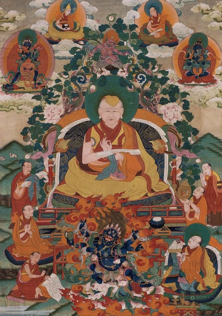 ཟླ་བ་བཟང་པོ་དེའི་སྲས་ས་སྙིང་སྤྲུལ་པ་རྒྱལ་པོ་ལྷ་དབང་། དེའི་སྲས་གཤིན་རྗེ་གཤེད་ཀྱི་སྤྲུལ་པ་རྒྱལ་པོ་གཟི་བརྗིད་ཅན། དེའི་སྲས་སྒྲིབ་སེལ་སྤྲུལ་པ་རྒྱལ་པོ་ཟླ་བས་བྱིན། སྲས་རྨུགས་བྱེད་སྤྲུལ་པ་རྒྱལ་པོ་ལྷའི་དབང་ཕྱུག །དེའི་སྲས་ཁེངས་བྱེད་སྤྲུལ་པ་རྒྱལ་པོ་སྣ་ཚོགས་གཟུགས། དེའི་སྲས་ནམ་སྙིང་སྤྲུལ་པ་རྒྱལ་པོ་ལྷའི་དབང་ལྡན། འདི་རྣམས་སྔོན་གྱི་ཆོས་རྒྱལ་བདུན་ཟེར། དེའི་བཙུན་མོ་སྣ་ཚོགས་ཡུམ་གྱི་སྲས། རིགས་ལྡན་ཉི་ཤུ་རྩ་ལྔའི་ཐོག་མ་འཇམ་དབྱངས་སྤྲུལ་པ་རིགས་ལྡན་དང་པོ་འཇམ་དཔལ་གྲགས་པ་དང་། དེའི་བཙུན་མོ་སྒྲོལ་མའི་སྲས་སྤྱན་རས་གཟིགས་ཀྱི་སྤྲུལ་པ་རིགས་ལྡན་པདྨ་དཀར་པོ་གཉིས་པ། གཤིན་རྗེ་མཐར་བྱེད་སྤྲུལ་པ་རིགས་ལྡན་བཟང་པོ་གསུམ་པ། ས་སྙིང་སྤྲུལ་པ་རིགས་ལྡན་རྣམ་རྒྱལ་བཞི་པ། རྨུགས་བྱེད་སྤྲུལ་པ་རིགས་ལྡན་བཤེས་གཉེན་བཟང་པོ་ལྔ་པ། སྒྲིབ་སེལ་སྤྲུལ་པ་རིགས་ལྡན་ཕྱག་དམར་བ་དྲུག་པ། ཁེངས་བྱེད་སྤྲུལ་པ་རིགས་ལྡན་ཁྱབ་འཇུག་སྦས་པ་བདུན་པ། ནམ་སྙིང་སྤྲུལ་པ་རིགས་ལྡན་ཉི་མ་གྲགས་པ་བརྒྱད་པ། བགེགས་དགྲའི་སྤྲུལ་པ་རིགས་ལྡན་ཤིན་ཏུ་བཟང་པོ་དགུ་པ། ཕྱག་རྡོར་སྤྲུལ་པ་རིགས་ལྡན་རྒྱ་མཚོ་རྣམ་རྒྱལ་བཅུ་པ། གཤིན་རྗེ་གཤེད་ཀྱི་སྤྲུལ་པ་རིགས་ལྡན་རྒྱལ་དཀའ་བཅུ་གཅིག་པ། ས་སྙིང་སྤྲུལ་པ་རིགས་ལྡན་ཉི་མ་བཅུ་གཉིས་པ། རྨུགས་བྱེད་སྤྲུལ་པ་རིགས་ལྡན་སྣ་ཚོགས་གཟུགས་བཅུ་གསུམ་པ། སྒྲིབ་སེལ་སྤྲུལ་པ་རིགས་ལྡན་ཟླ་བའི་འོད་བཅུ་བཞི་པ། ཁེངས་བྱེད་སྤྲུལ་པ་རིགས་ལྡན་མཐའ་ཡས་བཅོ་ལྔ་པ། ནམ་སྙིང་སྤྲུལ་པ་རིགས་ལྡན་ས་སྐྱོང་བཅུ་དྲུག་པ། བགེགས་དགྲའི་སྤྲུལ་པ་རིགས་ལྡན་དཔལ་སྐྱོང་བཅུ་བདུན་པ། ཕྱག་རྡོར་སྤྲུལ་པ་རིགས་ལྡན་སེང་གེ་བཅོ་བརྒྱད་པ། གཤིན་རྗེ་མཐར་བྱེད་སྤྲུལ་པ་རིགས་ལྡན་རྣམ་གནོན་བཅུ་དགུ་པ། ད་ལྟ་འདི་ཁྲི་ལ་ཕེབས་ནས་གདོང་ངན་ཞེས་པ་མེ་སྤྲེལ་ལོས་ཕུག་ལུགས་པའི་ལོ་ལྔ་བཅུ་སོང༌། རྒྱལ་བ་བསྐལ་བཟང་རྒྱ་མཚོའི་ཡང་སྲིད་རིན་པོ་ཆེ་༸རྒྱལ་བ་འཇམ་དཔལ་རྒྱ་མཚོ་ཁྲི་འདོན་བྱས་ནས་ལོ་བཅོ་ལྔ་སོང་བ་ཡིན། ས་སྙིང་སྤྲུལ་པ་རིགས་ལྡན་སྟོབས་པོ་ཆེ་ཉི་ཤུ་པ། རྨུགས་བྱེད་སྤྲུལ་པ་རིགས་ལྡན་མ་འགག་པ་ཉེར་གཅིག་པ། སྒྲིབ་སེལ་སྤྲུལ་པ་རིགས་ལྡན་མིའི་སེངྒེ་ཉེར་གཉིས་པ། ནམ་སྙིང་སྤྲུལ་པ་རིགས་ལྡན་དབང་ཕྱུག་ཆེན་པོ་ཉེར་གསུམ་པ། ཕྱག་རྡོར་སྤྲུལ་པ་རིགས་ལྡན་མཐའ་ཡས་རྣམ་རྒྱལ་ཉེར་བཞི་པ། འཇམ་དབྱངས་སྤྲུལ་པ་རིགས་ལྡན་དྲག་པོ་འཁོར་ལོ་ཅན་ཉེར་ལྔ་པའོ། །དེས་རིགས་ལྡན་ཉེར་ལྔ་རྫོགས་སོ། །