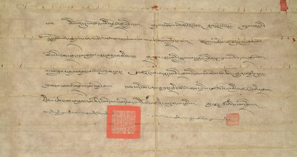 མཆན། གོང་གསལ་བཀའ་ཡིག་དེ་ནི་ཕལ་ཆེར་ཆུ་རྟ་ཕྱི་ལོ་ ༡༧༠༢ ལོར་རྒྱལ་བ་ཚངས་དབྱངས་རྒྱ་མཚོས་ལྷ་ས་ཞོལ་གཉེར་པ་དང་། དེང་གི་སྟོད་ལུང་རྫོང་ཁོངས་སུ་ཡོད་པའི་དེ་སྔའི་ཤུན་གདོང་དཀར་རྫོང་འོག་གི་སྣེ་མོ་མངགས་སླེབས་ཐ་དག་ལ་མངའ་འོག་ཁྲི་ཟམ་གཙོས་མི་སེར་ཚོར་ཁྲལ་འུལ་གང་བྱུང་འགེལ་གཙེར་མི་ཆོག་པའི་བཀའ་རྒྱ་གནང་བ་ལ། ཕྱིས་༸གོང་ས་བདུན་་པ་མཆོག་ནས་ཀྱང་༸གོང་ས་དྲུག་པའི་བཀའི་མཆན་དོན་རྒྱབ་གནོན་གནང་བ་ཞིག་རེད་འདུག མདོར་ན། བཀའ་ཐམ་ཆེ་བ་དེ་༸གོང་ས་དྲུག་པའི་བཀའ་ཐམ་དང་། ཆུང་དེ་༸གོང་ས་བདུན་པའི་བཀའ་ཐམ་ཡིན་ཚོད་ལ་བརྟག་པར་མཛོད་ཅིག་གུ །