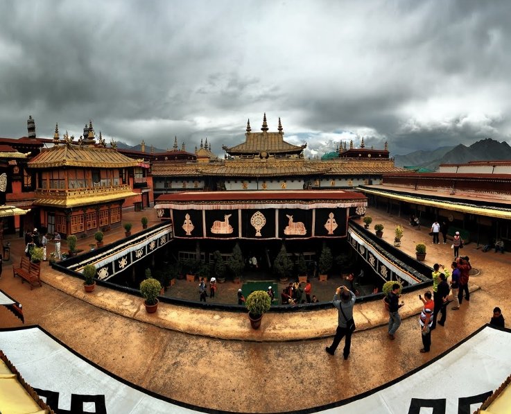 སྤྱི་ལོའི་དུས་རབས་བདུན་པའི་དུས་འགོར་བོད་ཀྱི་རྒྱལ་ཐོག་སོ་གསུམ་པ་ཆོས་རྒྱལ་སྲོང་བཙན་སྒམ་པོས་ཕྱི་ལོ་ 642/ 647 ལོར་བཞེངས་པས་ད་བར་ལོ་ངོ་ 1371/ 1376 ཕྱིན་ཡོད། གཙུག་ལག་ཁང་གི་རྒྱ་ཁྱོན། གཙུག་ལག་ཁང་གི་ས་ཆའི་རྒྱ་ཁྱོན་ལ་རྨིད་གྲུ་བཞི་མ་ 13000 ཙམ་དང་། ཨར་སྐྲུན་སྤྱིའི་རྒྱ་ཁྱོན་ལ་རྨིད་གྲུ་བཞི་མ་ 35100 ལྷག་ཙམ་ཡོད་ལ། གཙུག་ལག་གི་ལྟེ་བར་ཐོག་ཚད་གསུམ་དང་། ཕྱོགས་བཞིའི་རྒྱ་ཕིབས་བཞི་དང་། མཚམས་བཞིར་ཟུར་ལྕོག་བཞི་བཅས་ཐོག་ཚད་བཞི་ཡོད་དོ།།