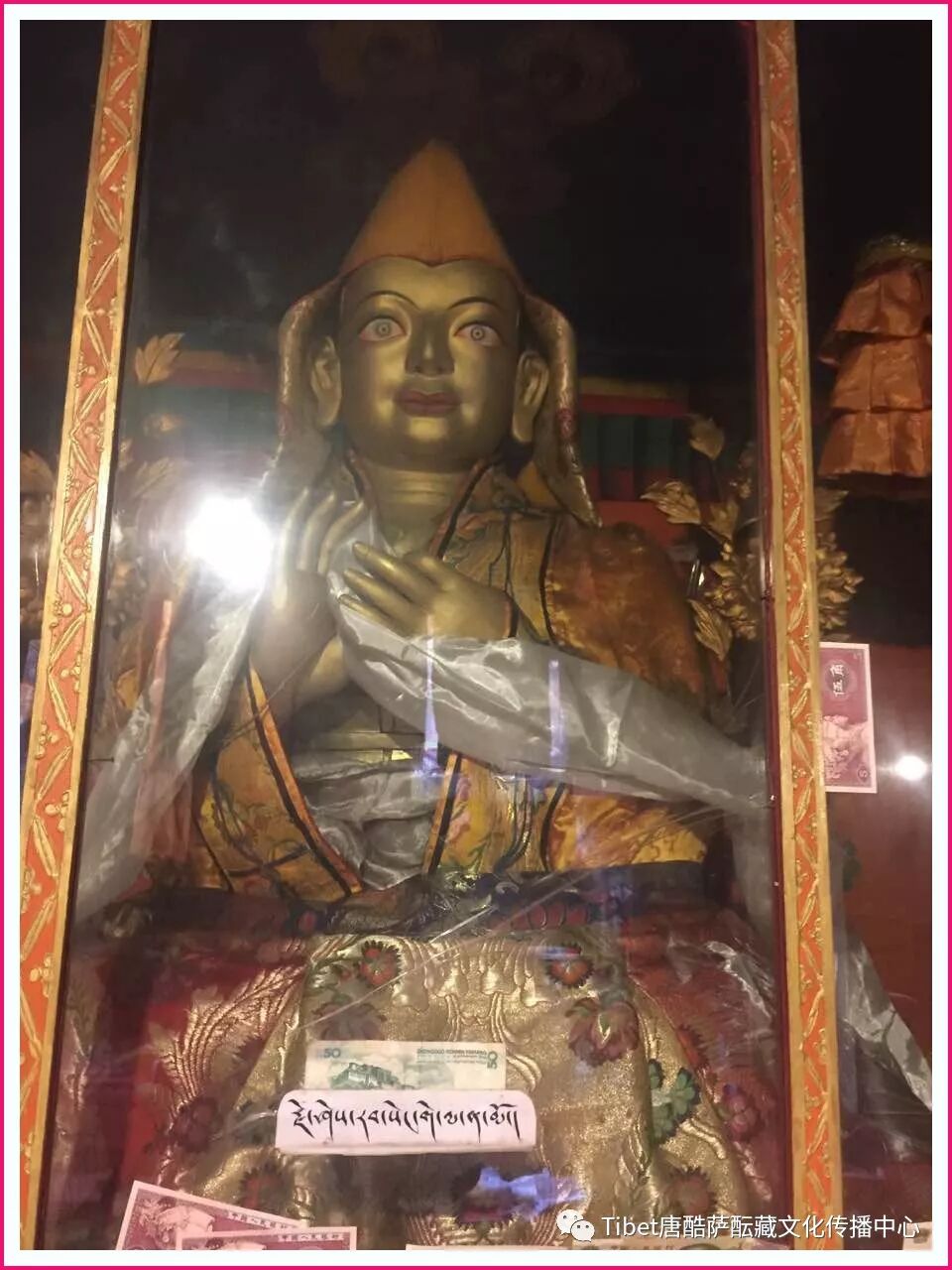 དེ་ཡང་གཙང་ཕྱོགས་གཞིས་རྩེ་གྲོང་ཁྱེར་ནས་ལྷོ་ནུབ་ཕྱོགས་སུ་སྣར་ཐང་བརྒྱུད་ཆུ་མིག་ནས་གམ་པའི་བར་གྱི་སྣུམ་ནག་གཞུང་ལམ་ཐོག་སྤྱི་ལེ ༦༨ ཙམ་བསྐྱོད་པའི་གནས་སུ་ཆགས་པའི་གསང་སྔགས་བསྟན་པའི་གདན་ས་དཔལ་ལྡན་སྲད་རྒྱུད་དགའ་ལྡན་ཕོ་བྲང་གི་ལོ་གྱོན་མའི་སྒྲུབ་ཆུའི་འབྱུང་བ་དང་ཕན་ཡོན་ཅུང་ཟད་བརྗོད་པར་བྱ་བ་ལ། དགོན་པ་འདི་ཉིད་ཐོག་མར་སྤྱི་ལོ༡༤༣༠ ལོར་རི་བོ་དགེ་ལྡན་པའི་ཤིང་རྟའི་སྲོལ་འབྱེད་མཉམ་མེད་ཙོང་ཁ་པ་ཆེན་པོའི་སྲས་ཀྱི་ཐུ་བོ་རྗེ་ཉིད་ཀྱིས་གསང་ཆེན་བསྟན་པའི་རྒྱུད་འཛིན་དུ་མངའ་གསོལ་བའི་རྗེ་བཙུན་ཤེས་རབ་སེང་གེ་དང་ཁོང་གི་དངོས་སློབ་འདུལ་ནག་དཔལ་ལྡན་བཟང་པོ་ཡབ་སྲས་ཀྱིས་ཕྱག་བཏབ་གནང་བ་ཞིག་རེད།