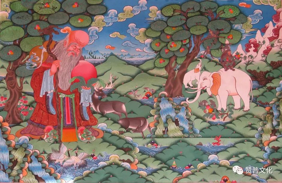 མཐུན་པ་སྤུན་བཞི། བྱ་གོང་མ་སྲེག རི་བོང་། སྤྲེའུ། གླང་ཆེན། 和气四瑞 羊角鸟 兔子 猴子 大象