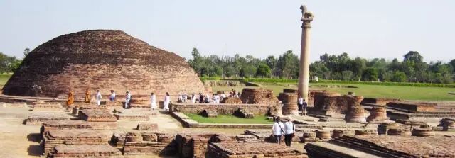 དབུས་ཀྱི་གཉལ་ལྟེའུ་ར། →གཙང་། →བལ་བོ།→ཏི་ར་ཧུ་ཏི། →གྲོང་ཁྱེར་པ་ཏ།→ཡངས་པ་ཅན་གྱི་གྲོང་ཁྱེར།→ཆུ་བོ་གང་གཱ→མ་ག་ངྷ།→(རྡོ་རྗེ་གདན།→ཆུ་བོ་ནེ་རཉྫ་ན།→བྱ་རྒོད་ཕུང་པོའི་རི།→རྒྱལ་པོའི་ཁབ།→ནཱལེནྡྲ།)