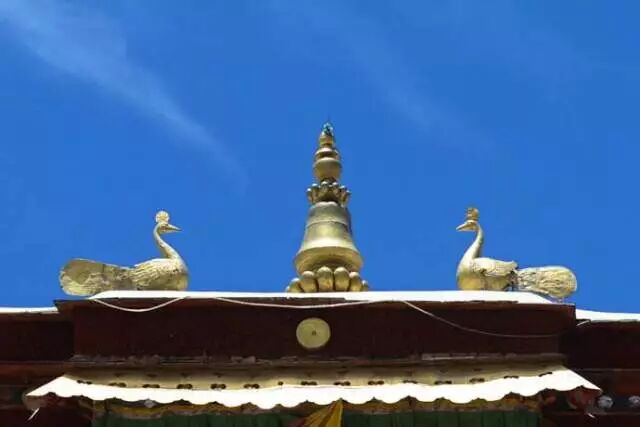 རྨ་བྱ་གཉིས་ཀྱིས་གཉྫི་རའི་རྩེ་མོར་བློ་རྩེ་གཅིག་པས་བལྟ་བས་ནི། ཕྱི་ནང་གི་གྲུབ་མཐའ་འཛིན་པའི་གང་ཟག་སུ་འདྲ་ཞིག་ཡིན་ཡང་རུང་སྟེ། མཐར་ཐུག་བྱང་ཆུབ་ཆེན་པོ་ལ་དམིགས་པར་མཚོན་པའོ། །ཡང་མདོ་སྨད་ལུགས་བརྒྱའི་འབྱུང་གནས་དཔལ་སྡེ་དགེ་ལྷུན་འགྲུབ་སྟེང་གི་ཆོས་གྲྭ་ཆེན་པོ་ན་སྡེ་དགེའི་བུ་རིན་པོ་ཆེ་ཞེས་འབོད་པའི་སྡེ་དགེའི་ཁྲི་རབས་དྲུག་པ་རྒྱལ་བས་ལུང་གིས་བསྔགས་པའི་བསྟན་པའི་སྦྱིན་བདག་ཆེན་པོ་ཆོས་རྒྱལ་བསྟན་པ་ཚེ་རིང་མཆོག་གིས་རབ་བྱུང་བཅུ་གཉིས་པའི་ས་བྱ་1729ལོར་སྡེ་དགེའི་པར་ཁང་ཆོས་མཛོད་ཆེན་མོ་གསར་བཞེངས་གནང་སྐབས་ཐོག་ཁ་ལ་གསེར་ཟངས་ལས་གྲུབ་པའི་རྨ་བྱ་ཆོས་འཁོར་ཞིག་བཙུགས་ཡོད་ཅིང་། ཡང་ཆོས་རྒྱལ་མཆོག་གིས་སྔོན་སྡེ་དགེའི་ཁྲི་རབས་དང་པོ་སྟོབས་ཀྱིས་འཁོར་ལོས་བསྒྱུར་བའི་བླ་ཆེན་བྱམས་པ་ཕུན་ཚོགས་ཀྱིས་རབ་བྱུང་བཅུ་པའི་མེ་འབྲུག་1616ལོར་གསར་དུ་བཞེངས་པའི་སྤྲུལ་པའི་ལྷ་ཁང་ཆེན་པོ་བསམ་འགྲུབ་མཐོང་གྲོལ་ཆེན་མོ་ལ་ཡང་གསེར་འཕྲུ་རྒྱ་ཕིབས་དང་གསེར་གྱི་རྨ་བྱ་ཆོས་འཁོར་བཅས་འཛུགས་པར་མཛད་ཅིང་། དེ་ལྟར་ན་རྨ་བྱས་ས་སྐྱའི་ཕ་ཆོས་གསུང་ངག་ལམ་འབྲས་མཚོན་ཚུལ་གོང་གསལ་ལྟར་ལ། ཆོས་འཁོར་གྱི་གྲུབ་ཆ་གཙོ་བོ་གསུམ་སྟེ། འཛིན་བྱེད་ཀྱི་ལྟེ་བ་དང་། གཅོད་བྱེད་ཀྱི་རྩིབས། སྡུད་བྱེད་ཀྱི་མུ་ཁྱུད་གསུམ་གྱིས་སྟོན་པ་སངས་རྒྱས་ཀྱིས་རིགས་ཅན་གསུམ་གྱི་གདུལ་བྱ་ལ་ཆོས་ཀྱི་འཁོར་ལོ་རིམ་པ་གསུམ་དུ་བསྐོར་བ་དང་གཞན་ཡང་བརྗོད་བྱ་ཚུལ་ཁྲིམས་ཏིང་འཛིན་ཤེས་རབ་བཅས་བསླབ་པ་རིན་པོ་ཆེ་རྣམ་པ་གསུམ་དང་། རྗོད་བྱེད་འདུལ་བ་མདོ་སྡེ་མངོན་པ་བཅས་སྡེ་སྣོད་རིན་པོ་ཆེ་རྣམ་པ་གསུམ་ཡང་མཚོན་པར་ཤེས་དགོས་སོ། །