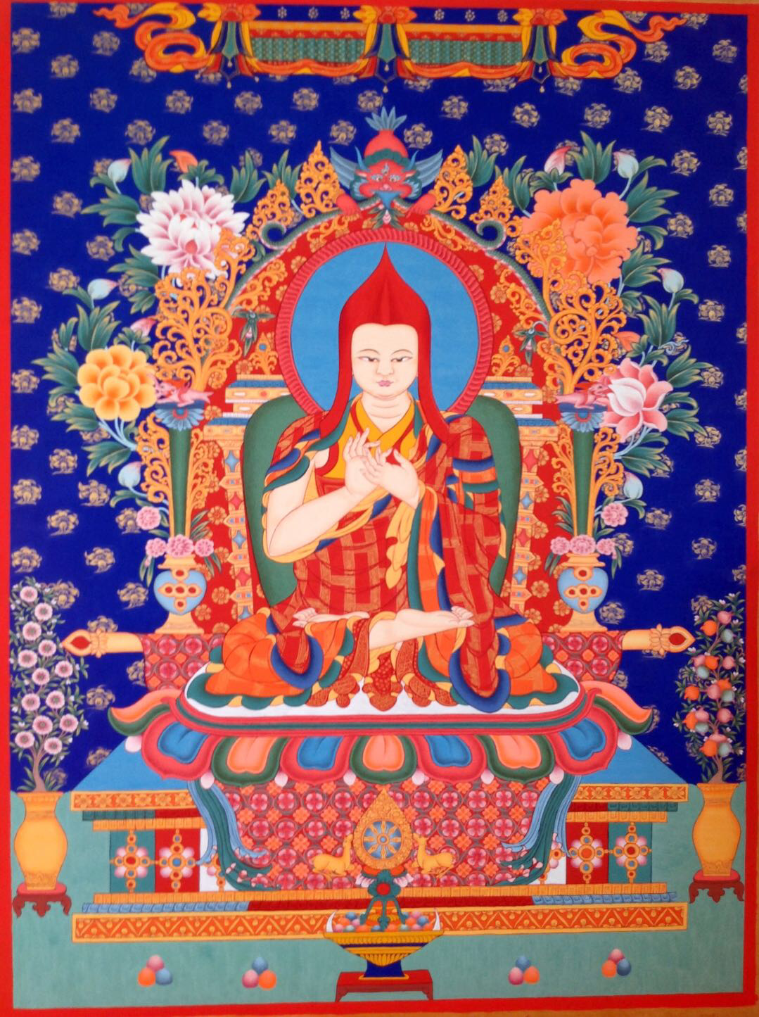 སྐབས་དེར་གཞིས་རྩེ་དམར་ཁེ་བ་ཞེས་པས་པའི་བཤན་པས་གཡག་ཀོ་རློན་པའི་སྟེང་ཁྲག་དང་གྲོ་ཞིབ་བྱུག་སྟེ་འཁྱགས་བཏང་བའི་ཀོ་བ་སྡེར་སྡེར་ཞིག་བཞག་ཡོད་པ་དེའི་སྡེང་འཕྲུལ་འཁོར་རྡོར་འབེབས་ཞེས་ས་ནས་ཐོག་རྩེག་གཅིག་ཙམ་ཡར་འཕར་མར་འབབ་ལན་མང་དང་། གན་རྐྱལ་ཉལ་བ་སོགས་བྱས་པས་འཁྱགས་ཐེབས་པའི་ཀོ་བ་བཞུར་ནས་རླངས་པ་ཐོན། དེ་ནས་ཀོ་བ་བཞི་ལྟེབས་བསྐྱོན་ནས་ཕྱག་གཅིག་གིས་ཡར་བཏེགས་ཏེ་ “ང་ཚོའི་ཆོས་ས་རང་ཏེ་མྱང་སྟོད་སྐྱིད་སྦུག་ནས་ཡིན། ཆོས་ཀྱི་སྒྲོ་མདོངས་སྤྱོད་ས་ཞ་ལུ་རྡོ་གཅལ་སྔོན་མོ། ཞ་ལུའི་དགེ་འདུན་རྣམས་ཀྱི་ཞབས་ཀྲད་ (ལྷམ་གྱི་རྡོག་པ་)ཉན་པ་ཡོད་དོ་”ཅེས་རྡོ་གཅལ་གྱི་དཀྱིལ་དུ་གཡུགས་པས་འཕར་རློང་དང་དྲོད་རླུང་གི་སྒྲུབ་རྟགས་ཐོན་པ་ཡིན།
