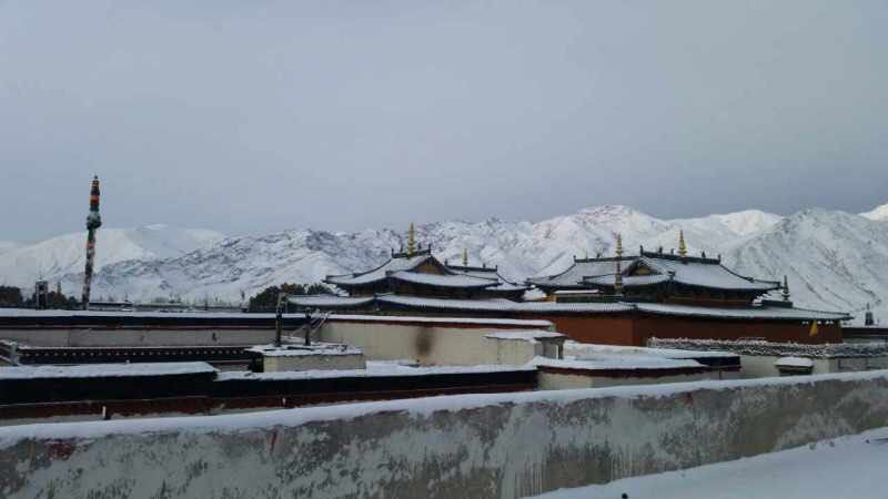 འོན་ཀྱང་ལྕེ་བཙུན་གྱིས་དགོན་པ་ཐག་རིང་ན་བླ་མའི་ཉེ་གནས་མཛད་རྒྱུར་ཐག་རིང་བར་དགོངས་ནས་མདའ་སྨུག་ནང་གསེར་བཀང་ཏེ་འཕངས་པས་ད་ལྟའི་དགོན་སྡེ་གནས་ཡུལ་དེར་པད་ཁའི་ཞིང་ཡིན་པ་དང་། མདའ་པད་ཁའི་ཞ་ལུའི་སྟེང་ཕོག་པས་“ཞ་ལུ་”ཞེས་པ་དེ་ལྟར་བྱུང་། དེ་ནས་རྗེ་བཙུན་གྱིས་ཐོག་མར་ཡུམ་ལྷ་ཁང་བཞེངས་ཏེ་ནང་རྟེན་དུ་ཡུམ་ཆེན་མོས་གཙོས་མངའ་བདག་ཁྲི་རལ་དང་། ཐུབ་པ་སེར་ཐུབ། ཕྱོགས་བཅུའི་སངས་རྒྱས་སོགས་སྐུ་རྒྱུ་སྨན་འདམ་ལས་གྲུབ་ཀྱང་ཁྲི་རྒྱབ་ཡོལ་དང་བཅས་གྲང་གསེར་གྱིས་ཁྱབ་པ་གསོལ་བས་གསེར་ཁང་ཞེས་པ་དེ་ལྟར་བྱུང་།