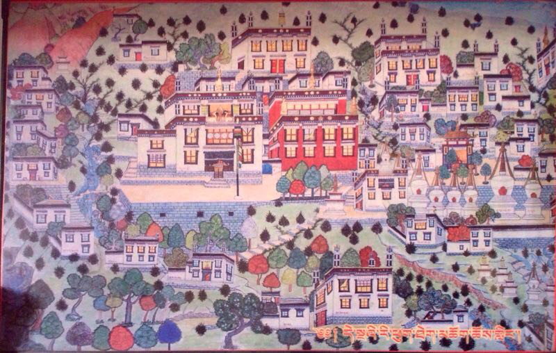 འདུ་ཁང་ཆེན་མོ་ཀ་བ་ ༣༦ དང་ཀ་རིང་གཉིས་ཅན་གྱི་ནང་སྐུ་རྒྱུ་སྨན་འདམ་ལས་གྲུབ་པའི་བུ་སྟོན་ཡབ་སྲས་གསུམ་གྱི་སྐུ་བརྙན་མི་ཚད་མ་དང་། གཡས་ནས་རྩིས་པའི་ལྷ་ཁང་དང་པོར་ཤར་ལི་ལས་གྲུབ་པའི་དུས་གསུམ་སངས་རྒྱས་ཀྱི་སྐུ་བརྙན། གསེར་བྲིས་ཀྱི་བཀའ་བསྟན་དང་། བརྒྱད་སྟོང་བརྒྱ་ཚར། སྣར་ཐང་གི་པར་ཕུད་བསྟན་འགྱུར། གཙང་ཁང་དབུས་མར་ཐུགས་རྗེ་ཆེན་པོ་རྡོ་སྐུ་རང་བྱོན་ཁ་སརྤ་ཎི། རྒྱ་གར་རྡོ་རྗེ་གདན་གྱི་གཙུག་ལག་ཁང་ནས་གདན་དྲངས་པའི་ཇོ་བོ་ཁ་སརྤ་ཎི། མ་ཎི་རང་བྱོན། ཐུགས་རྟེན་དུ་མཆོད་རྟེན་རང་བྱོན། གཞན་ཡང་སྐུ་ཞང་ཁྲི་པ་རིམ་བྱོན་གྱི་ནང་རྟེན། གཙང་ཁང་བྱང་མར་སྨན་འདམ་གྱི་རྣམ་པར་སྣང་མཛད་ཉེ་སྲས་བརྒྱད་ཀྱིས་བསྐོར་བ་ཐོག་སོ་གཉིས་མ་ཟིན་ཙམ། དེ་ནས་སྒོ་གསུམ་ལྷ་ཁང་ནང་གཙོ་བོ་བུ་སྟོན་རིན་ཆེན་གྲུབ་ཀྱི་ནང་རྟེན་ཇོ་བོ་བྱང་ཆུབ་ཆེན་མོ་དང་། དེའི་གཡས་སུ་ཐུགས་སྲས་ལོ་ཙཱ་བ་རིན་ཆེན་རྣམ་རྒྱལ་གྱི་ནང་རྟེན་ཐུབ་དབང་། གཡོན་དུ་འཇམ་དབྱངས་གྲགས་པ་རྒྱལ་མཚན་གྱི་ནང་རྟེན་ཐུབ་དབང་།