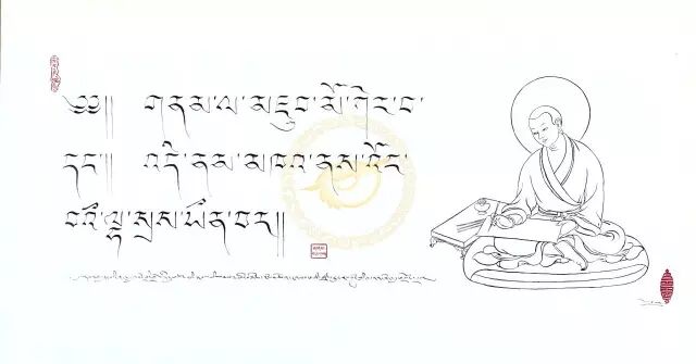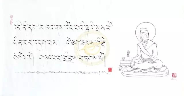 དུས་རབས་བདུན་པའི་ནང་ཆོས་རྒྱལ་སྲོང་བཙན་སྒམ་པོའི་སྐབས་ཀྱི་བོད་ཀྱི་སློབ་དཔོན་ཐོག་མ་ཐོན་མི་སམ་བྷོ་ཊའི་ཕྱག་རྒྱུན་དུ་གྲགས་པའི་སྦལ་ནག་ན་ལ་བགྲད་འདྲའི་ཡི་གེ།