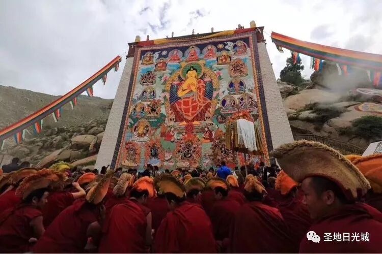 ཞོ་སྟོན་གྱི་དུས་ཚོད། རྒྱལ་མཆོག་ལྔ་པ་ཆེན་པོའི་སྐབས་སུ་དགའ་ལྡན་ཕོ་བྲང་གི་སྲིད་དབང་འཛུགས་སྐབས་རྟེན་འབྲེལ་གྱི་བྱེད་སྒོ་སོགས་རྣམ་པ་དུ་མའི་དགོས་པར་གཟིགས་ནས་འབྲས་སྤུངས་ཀྱི་གོས་སྐུ་ཆེན་མོ་བཀྲམ་པའི་སྲོལ་བཙུགས་པ་དང་ལྷན་དུ་འབྲས་སྤུངས་ཀྱི་དགེ་འདུན་པར་ཞོ་ཡི་སྟོན་མོ་གནང་སྲོལ་ཡོད་པ་དེར་ཞོ་སྟོན་ཞེས་ཟེར། བོད་ཟླ་དྲུག་པའི་གནམ་གང་སྟེ་ཞོ་སྟོན་གྱི་ཉིན་དེ་ལ་བོད་ཀྱི་བཀྲ་ཤིས་ཞོལ་པ་དང་ལྷ་མོ་བ་བཅས་འབྲས་སྤུངས་སུ་ཡོང་ནས་དགའ་ལྡན་ཕོ་བྲང་གི་མདུན་ངོས་སུ་ལྷ་མོའི་འཁྲབ་སྟོན་གཟིགས་མོ་འབུལ་གྱི་ཡོད་པ་ནས་རིམ་གྱིས་ཞོ་སྟོན་དེ་ལྷ་སའི་དུས་སྟོན་ཆེ་གྲས་སུ་གྱུར་པ་དང་དེ་ཉིན་འབྲས་སྤུངས་དགོན་གྱི་ཚོགས་ཆེན་ཞལ་ངོ་ལོ་རེར་ཐེངས་རེ་རྗེ་བའི་མཛད་སྒོ་ཆེན་མོ་དེ་ཡང་འབྲས་སྤུངས་གོས་སྐུའི་མདུན་དུ་སྤེལ་གྱི་ཡོད་དོ།། དེ་བཞིན་སེ་ར་དགོན་དུ་སྔ་མོ་ནས་གོས་སྐུ་བཤམས་སྲོལ་ཡོད་པ་དང་དགེ་འདུན་རྣམས་ལ་ཞོ་ཡི་སྟོན་མོ་འབུལ་གྱི་ཡོད། རིག་གསར་གོང་སེ་རའི་གོས་སྐུ་གླིང་གསུམ་མ་འདི་ནི་ལོ་ལྟར་ཞོ་སྟོན་གྱི་ཉིན་སེ་ར་ཚོགས་ཆེན་འདུ་ཁང་གི་མདུན་དུ་བཀྲམ་སྟོན་གནང་བ་དང་དེ་ནས་སྣང་རྩེ་ཤག་གི་སྐོར་བྱ་བ་༢༠དང་རགས་རྒྱབ་ཨ་ཕ་༣༠ཡིས་ཀརྨ་ཤག་གི་འཕྱམ་རྒྱག་སྲོལ་ཡོད་པ་དང་འཕྱམ་གྲུབ་རྗེས་ཀརྨ་ཤག་ལྷ་ཆེན་གྱིས་ལྷ་བབས་ནས་བྱུང་བའི་ལུང་བསྟན་གནང་བའི་དངོས་པོ། རྒྱལ་མཚན་སེར་པོ་རྒྱལ་བ་རིན་པོ་མཚོན་བྱེད། རྒྱལ་མཚན་དམར་པོ་པན་ཆེན་རིན་པོ་ཆེ་མཚོན་བྱེད། རྒྱལ་མཚན་དཀར་པོ་ས་གནས་སྲིད་གཞུང་མཚོན་བྱེད་སོགས་ལོ་རྗེས་མའི་ནང་མཐོ་མི་ཆེན་ནས་ཞིང་འབྲོག་གི་ཐོན་འབབ་ལེགས་ཉེས་སོགས་ཀྱི་རྟགས་མཚན་ལག་ཐོག་ཏུ་འཁྱེར་ཏེ་ཁྲོམ་དུ་འགྲོ་བས་ལྷ་སའི་མང་ཚོགས་ཀྱིས་དགོས་གལ་ཆེན་པོས་ལྟ་བར་འགྲོ་ཡི་ཡོད་དོ། །