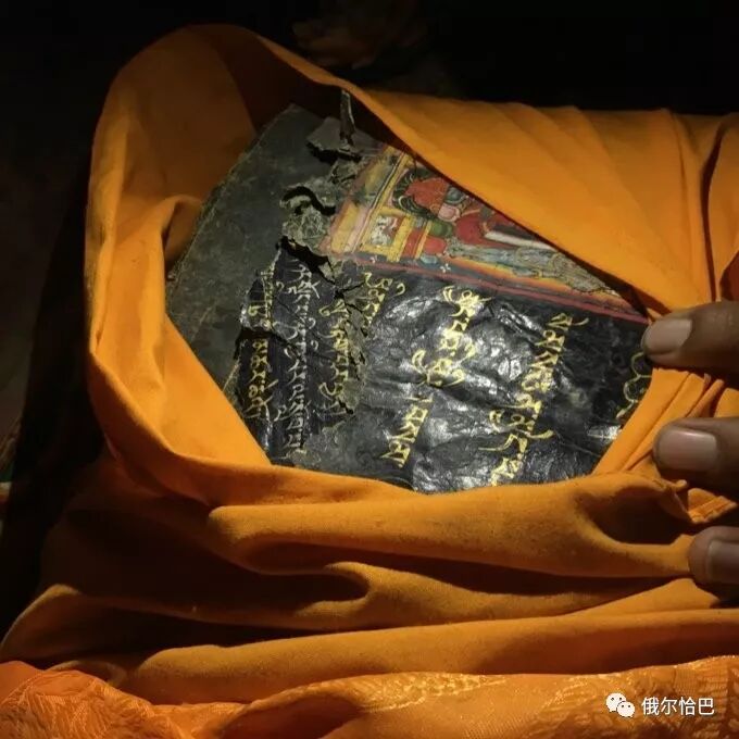 ལོ་ཁ་ཤས་སྔོན་དུ་རིག་གསར་སྐབས་ས་འོག་ཏུ་སྦས་པའི་ཐང་རྙིང་ཉི་ཤུ་ལྷག་གནས་དེ་ནས་རྙེད་པར་བཤད་ཅིང་། དེ་དག་ད་ལྟ་རེ་རེ་བཞིན་ལྷ་ཁང་ན་མཇལ་རྒྱུ་འདུག རང་ལ་ཐང་གའི་སྐོར་གྱི་ཤེས་བྱའི་དབུལ་བས་གསལ་ཐག་ཚོད་པ་ཞིག་མི་རྟོགས་ཀྱང་། མཐོང་བར་དཀོན་པའི་ཚོན་རིས་ཀྱི་མདངས་དང་ལྷའི་བཞེངས་སྟངས་ལས་གུ་གེའི་རྒྱལ་རབས་སྐབས་ཀྱི་ཐང་ག་ཡིན་པར་སྙམ་བྱུང་། དེར་ད་དུང་ས་འོག་ནས་བླངས་པའི་གླེགས་བམ་ཞིག་འདུག་ལ།
