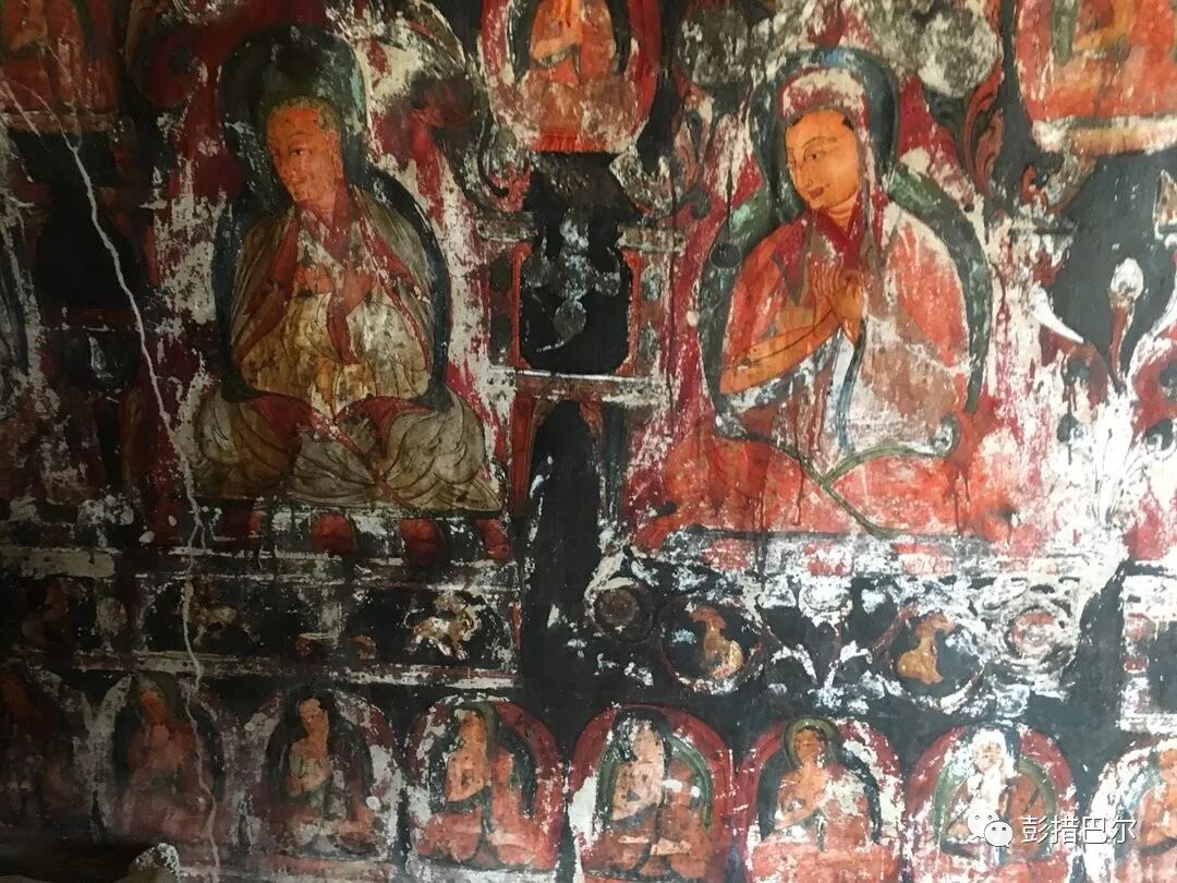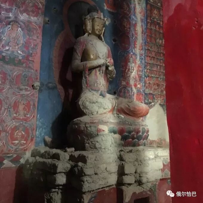 གྱང་ལྡེབས་གཡས་གཡོན་དང་སྒོའི་གཞོགས་བཅས་སུ་བྱང་ཆུབ་སེམས་དཔའ་ཡི་སྐུའི་ལྡེབས་རིས་ཀྱིས་ཁེངས་འདུག་ལ།《སྟོད་མངའ་རིས་ཀྱི་དགོན་སྡེ་ཁག་གི་དཀར་ཆག་དྭངས་གསལ་མེ་ལོང་།》དུ་བཀོད་པ་ལྟར་ན་ཁྱོན་ལྷ་སྐུ་ཆིག་སྟོང་ལྷག་ཙམ་ཡོད་པར་བྲིས་འདུག་པས། ཕུག་པ་འདི་གཅིག་པོའང་གུ་གེའི་ལྡེབས་རིས་ཀྱི་བང་མཛོད་ཆེན་པོ་ཞིག་ཏུ་བགྲངས་ཆོག་ཆོག་རེད་སྙམ་སོང་། དེའི་གཡས་ཕྱོགས་ཀྱི་ཕུག་པ་ད་ལྟ་ཞིག་གསོ་བྱེད་བཞིན་ཡོད་པས་གསལ་བོ་ཞིག་མཐོང་མི་ཐུབ་མོད།