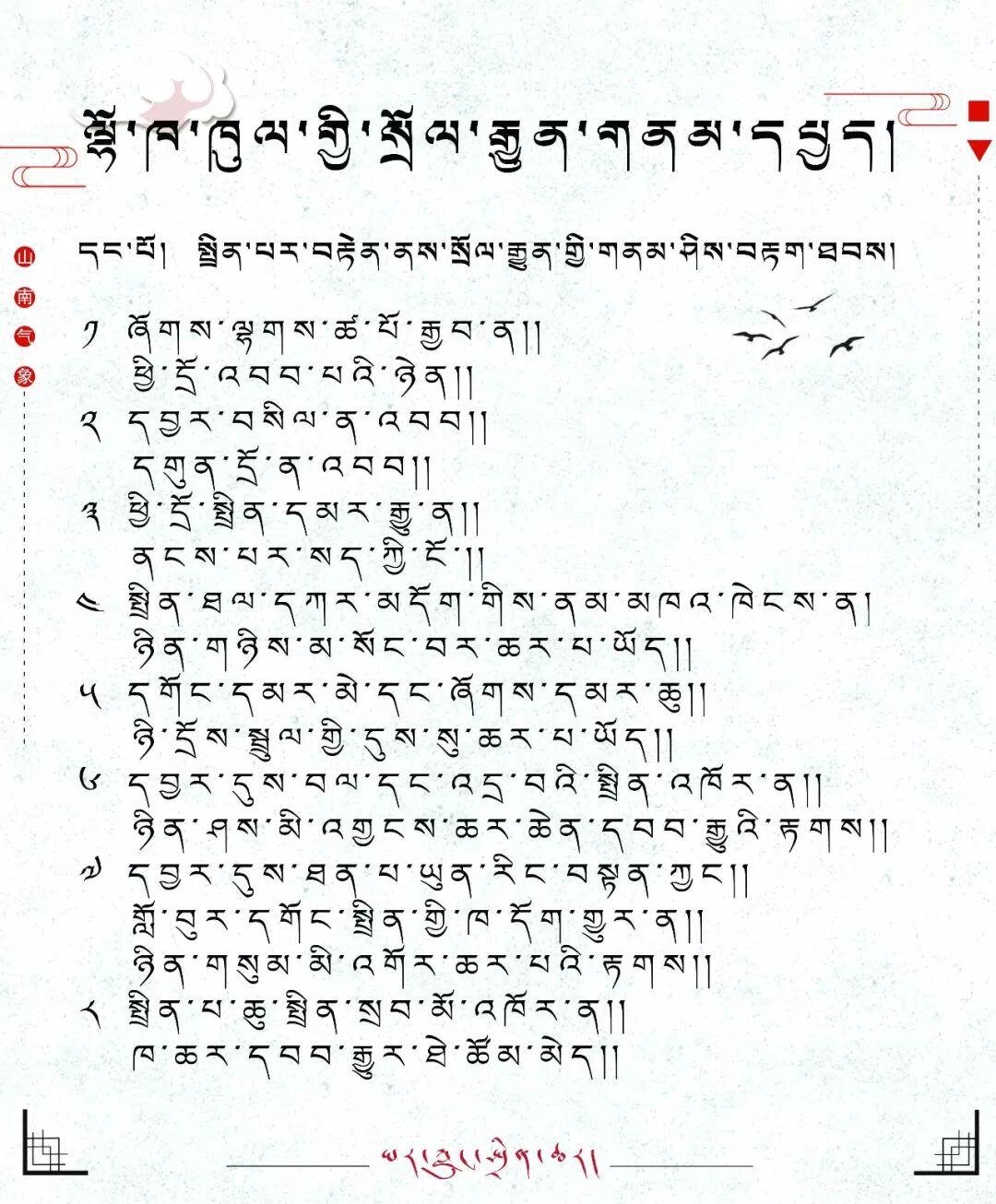 ༨༡.བོད་ཟླ་ལྔ་པར་ཆར་ཆུ་དཀོན་ན།བོད་ཟླ་དྲུག་པ་བདུན་པར་ཆར་ཆུ་བཟང།།