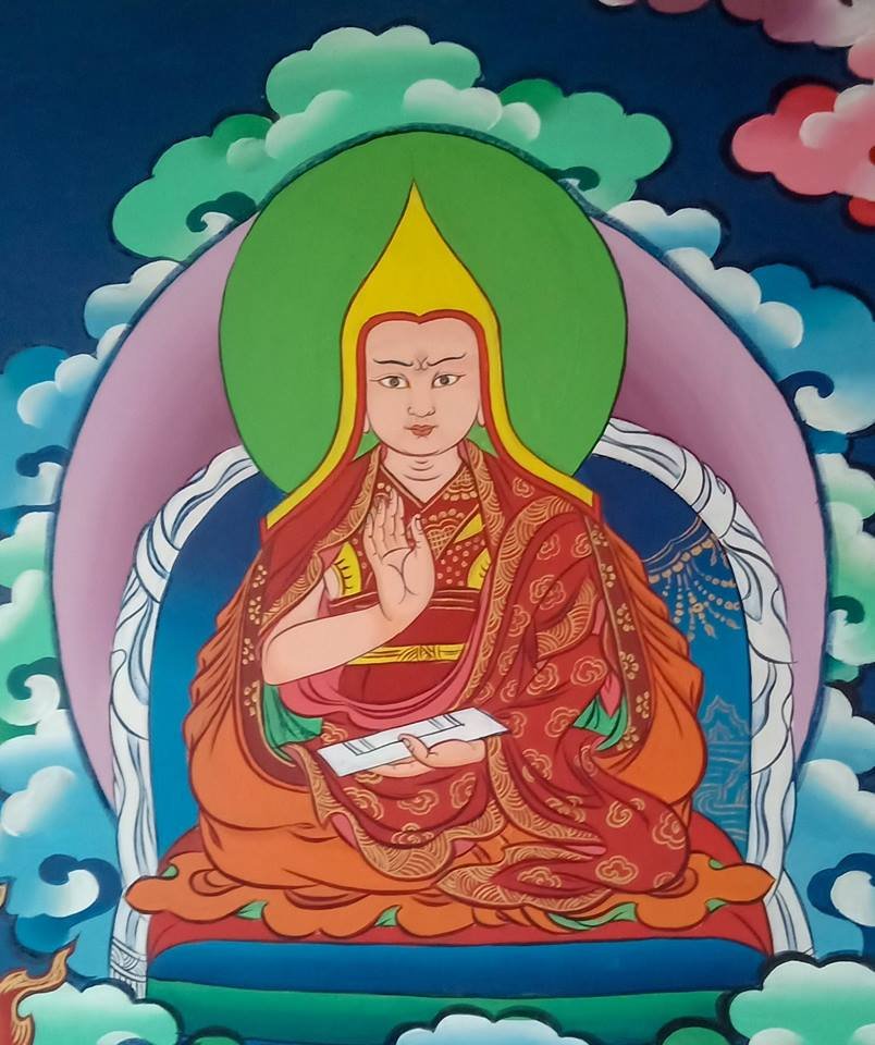 དེ་ལྟར་དགུང་ལོ་ ༡༦ ཡས་མས་ལ་རྒྱལ་ཚབ་ཐམས་ཅད་མཁྱེན་པ་དང་ལྷན་དུ་སྔོན་གྱི་ཐུགས་བསྐྱེད་བཟང་པོས་དབུས་སུ་འཇམ་མགོན་ཆོས་ཀྱི་རྒྱལ་པོའི་དྲུང་དུ་བྱོན་ཏེ། དགུང་ལོ་ཕྲ་ཡང་མགོན་པོ་འདི་ཉིད་ཀྱི་ཞབས་ཀྱི་པདྨོ་སྤྱི་བོའི་མཛེས་རྒྱན་དུ་བཞེས་ནས་ཟབ་རྒྱས་ཀྱི་གདམས་པ་རྣམས་གང་ཐུགས་རིན་པོ་ཆེའི་བུམ་བཟང་གང་བར་མཛད། ལྷག་པར་བཀའ་གདམས་བསྟན་པའི་ཆུ་འགོ་བྱང་རྭ་སྒྲེང་རྒྱལ་བའི་དབེན་གནས་ཡང་དགོན་བྲག་སེང་གེ་འདྲ་བའི་ཞོལ་གྱི་རི་ཁྲོད་དུ་རྒྱལ་སྲས་དམ་པ་དེར་རྗེ་བདག་ཉིད་ཆེན་པོས་རབ་འབྱམས་གསུང་རབ་ཀུན་ལ་ལྟ་བའི་མིག་གཅིག་པུ་ལམ་རིམ་ཆེན་མོའི་གླེགས་བམ་ཞིག་གནང་ནས་ཤར་ཕྱོགས་དྭགས་ཡུལ་གྱི་ལྗོངས་སུ་ཁྱོད་ཀྱི་བསྟན་པ་ཉི་མ་ཤར་བ་ལྟར་ཡོང་ངོ་ཞེས་སོགས་ལུང་བསྟན་དང༌། མ་འོངས་པ་ན་ལྷོ་དྭགས་ཀྱི་ཕྱོགས་སུ་ལམ་རིམ་གྱི་འཆད་སྤེལ་ཆེད་ཆོས་སྡེ་གསར་འཛུགས་དགོས་པའི་བཀའ་སློབ་དང་བཅས་སྩལ།
