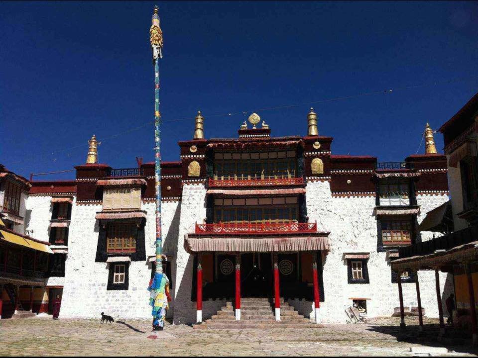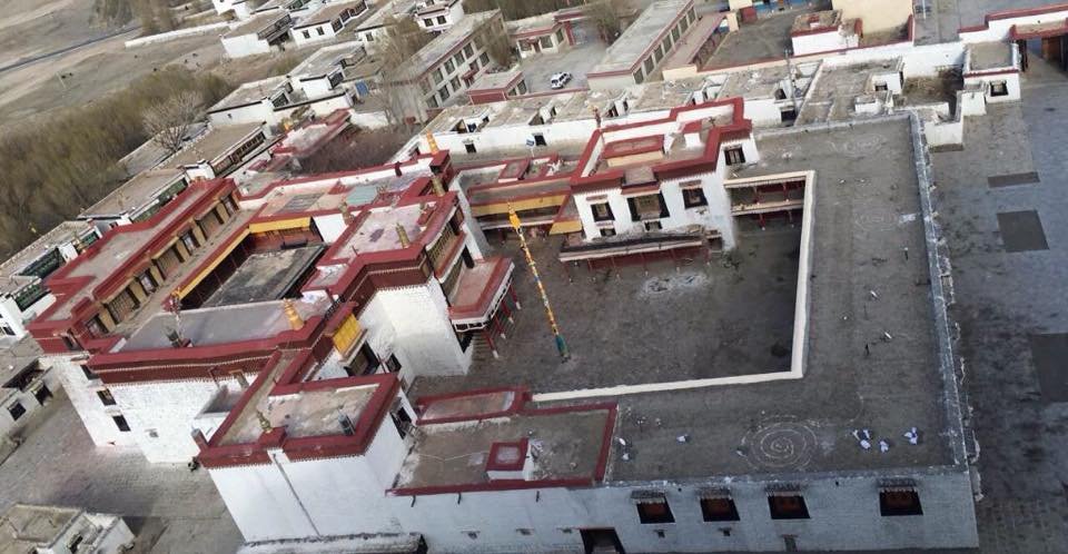 ཕར་ཕྱོགས་ན་ཞབས་ཕྱི་ཁང་དང་གསང་སྤྱོད། དེ་ནས་རྣམ་ཐར་ནུབ། དེ་ནས་ཕར་སོང་ན་གཉེར་ཚང་ཞིག་ཡོད། བླ་མ་ལྷ་ཁང་དང་། གཉེར་ཚང་། དེ་ནས་ལྷོར་རྣམ་ཐར་ནུབ། ཐབ་ཚང་ཞིག་ཡོད། མཁན་པོའི་གཟིམ་ཆུང་གི་ཐོག་ན་སྤྱི་ཁང་། དེ་ནས་ཐོག་ཁར་སོང་ན་དྲུག་ཅུ་ཞེས་པ། དེའི་དཀྱིལ་དེར་བླ་མ་ལྷ་ཁང་ངམ་ལམ་རིམ་ལྷ་ཁང་ཀ་བཞི་མ། ཤར་ན་བྱམས་པ་ལྷ་ཁང་། ནུབ་ན་གནས་བཅུ་ལྷ་ཁང་། གཙུག་ལག་ཁང་ནང་ཧ་ལམ་འདི་ཙམ་ཡིན། སྒོ་འཕྱོར་ནས་མར་བབས་ན་མདོ་ལྕགས་ཆེ་མོ། ནུབ་ན་བྱམས་ཁང་ཐོག་རྩེག་བཞི་ཐོག དེ་ནས་སྐས་ཐུང་ཞིག་བབས་ན་སྐྱབས་མགོན་སྦུག་གི་ཐོག་ཁར་ལྷ་ཁང་ཞིག་ཡོད། དེའི་ཕར་ཕྱོགས་ན་བྱམས་ཁང་གི་སྐུ་གཉེར་ཤག དེའི་ཐོག་ཁར་པར་ཁང་། དེའི་ཁ་སྤྲོད་ཕར་ཕྱོགས་དེར་བཀའ་འགྱུར་ལྷ་ཁང་། དེ་ནས་ཆོས་རར་ཆོས་རའི་གཞུང་སྒོ་ནས་ཕར་ཕྱོགས་དེར་སྤྱི་ཁང་ཞེས་དགོན་པའི་ལས་བྱེད་ས་གཙོ་བོ་དེ་ཡིན། དེའི་ཤར་གྱི་ཐོག་ཁར་དེར་བཀའ་འགྱུར་ལྷ་ཁང་། དེའི་སྒོ་འགྲམ་དེར་དགྲ་ལྷ་ཞེས་པའི་མགོན་ཁང་ཆུང་ཆུང་ཞིག སྒོ་འཕྱོར་ནས་འདུ་ཁང་ལ་ཡར་འཛུལ་བའི་གཡས་གཡོན་གཉིས་ལ་གཉེར་ཚང་ཤར་དང་ནུབ་ཅེས་པ་ཡོད། ཆོས་རའི་ཕྱི་ལོགས་སུ་གཞུང་སྒོ་ཐོན་པ་ན་ཤར་ཕྱོགས་སྲང་ལམ་ཞིག་ཡོད་པ་དེའི་ནང་སྦག་ཁང་ཞེས་སྤྱི་ཁང་དང་། དེའི་ཐོག་ཁར་སྦ་ར་ལགས་ཞེས་པ་ཞིག་ཡོད། དེ་ནི་ཇོ་བོ་ཉི་ཟེར་བ་ཡིན་པར་སྙམ། དེར་མགོན་ཁང་དང་ལྷ་ཚུགས་ཡོད་པར་བསྐང་གསོ་བ་གཅིག་ཡོད། ཆོས་སྡེའི་སྲུང་མ་གཙོ་བོ་ནི་ལྷ་ཆོས་གསུམ་ཞེས་གནས་ཆུང་ཆོས་སྐྱོང་དང་། ལྷ་མོ། སྦ་ར་ལགས་བཅས་གསུམ་ཡིན། དགེ་བསྐོས་དང་དབུ་མཛད་འཕོ་ལེན་སྐབས་གཟབ་སྤྲོས་དང་བཅས་དར་གསུམ་འཁྱེར་ཡོང་ནས་གནས་ཆུང་དང་། ལྷ་མོ། སྦ་ར་ལགས་བཅས་ལ་འབུལ་གྱི་ཡོད། གོང་གི་ལྷ་ཁང་རྣམས་སུ་སྐུ་གསུང་ཐུགས་རྟེན་རྣམས་ལྷ་ཁང་གི་མིང་གཞིར་བཟུང་བྱུར་བུར་དུ་ཁེངས་ཡོད། དགེ་འདུན་ལྔ་བརྒྱ་ལྷག་ཙམ་ཤོངས་བའི་ཤག་སྒོར་སོགས་ལྷམ་མེ་ལྷན་ནེར་ཡོད།