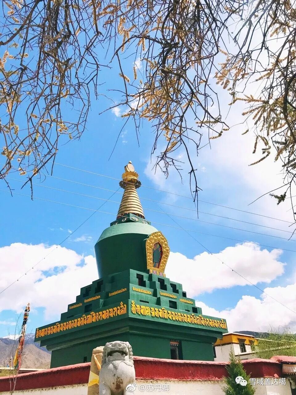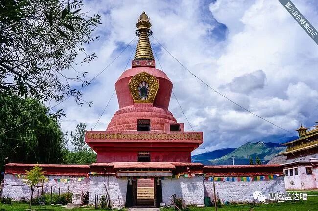 ངོ་མཚར་མཆོད་རྟེན་དམར་པོ་ཆོས་ཀྱི་འཁོར་ལོ་བྱང་ཆུབ་ཆེན་པོའི་ལུགས་སུ་བཞེངས། བློན་པོ་སྣ་སྣམ་རྒྱལ་ཚ་ལྷ་སྣང་གིས་ལས་དཔོན་བྱས། པདྨ་སྟོང་གིས་ལེགས་པར་བརྒྱན་པའོ།།