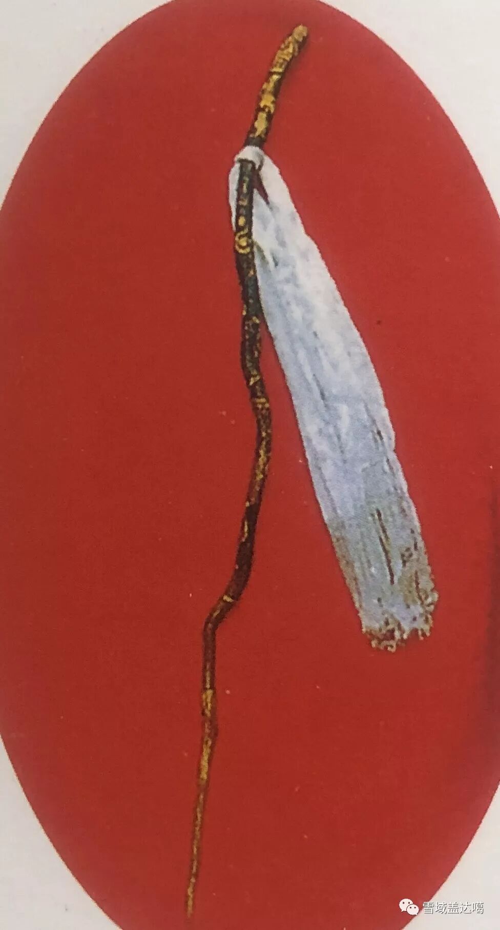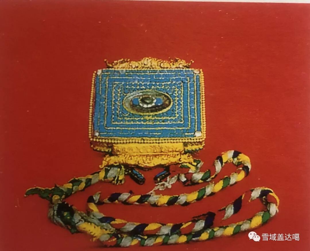 སློབ་དཔོན་ཆེན་པོ་པདྨ་འབྱུང་གནས་ཀྱིས་པེ་ཧར་རྒྱལ་པོ་ལ་བསྩལ་བའི་ཉིད་ཀྱི་དབུ་སྐྲ་ཉག་མ་བདུན་བཞུགས་པའི་ཛམ་བུ་ཆུ་གསེར་ལས་གྲུབ་པའི་མགུལ་གའུ།