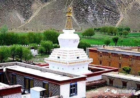 གཙུག་ལག་ཁང་གི་ཕྱོགས་བཞིའི་ངོ་མཚར་མཆོད་རྟེན་དཀར་པོ། བྱང་ཆུབ་ཆེན་པོའི་མཆོད་རྟེན་ཉན་ཐོས་ཀྱི་ལུགས་སུ་བཞེངས། རྒྱལ་པོའི་བློན་པོ་ཤུད་བུ་དཔལ་གྱི་སེང་གེས་ལས་དཔོན་བྱས། སེང་གེ་བརྒྱད་ཀྱིས་ལེགས་པར་བརྒྱད་པའོ།།