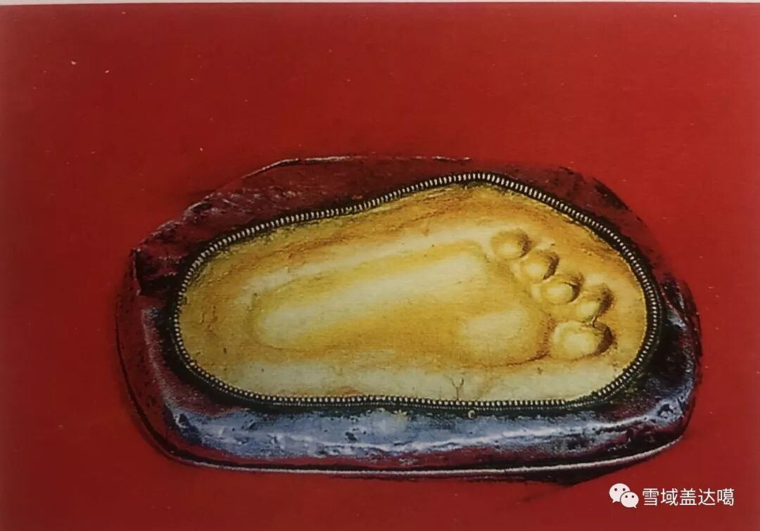 སློབ་དཔོན་ཆེན་པོ་པདྨ་འབྱུང་གནས་ཀྱིས་སྲིན་པོའི་ཁ་གནོན་དུ་ཕེབས་ཁར་གུངཐང་ལ་ཐོག་ཏུ་འཇོག་གནག་མཛད་པའི་ཞབས་རྗེས་བྱིན་ཅན།