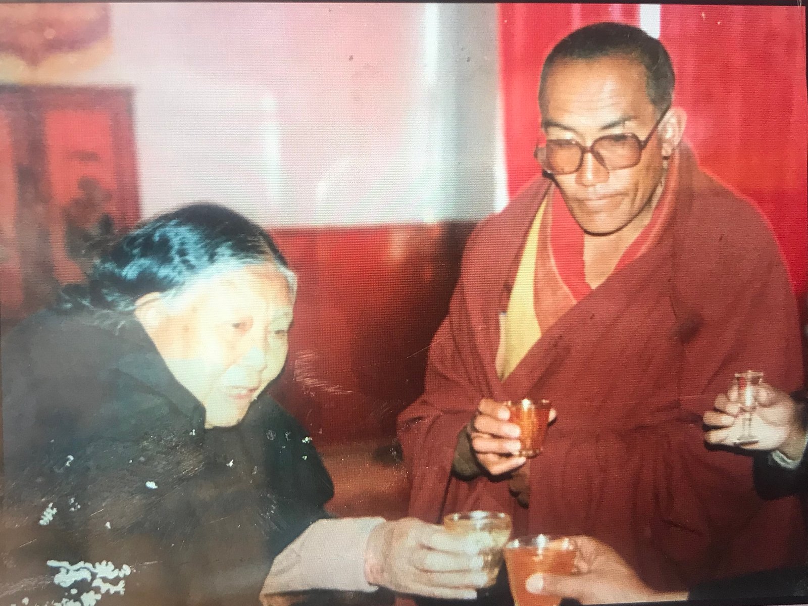 ཉིན་ཞིག་གློ་བུར་དུ་འོད་ཡུག་ཏུ་ཡུམ་ལ་གཟིགས་པར་ཕེབས་པས། ཡུམ་གྱིས་བླ་མ་ཁྱེད་རང་སྐྱ་བོ་མི་ནག་གི་གནས་འདི་ལྟ་བུར་འོང་ནས་ཅི་བྱེད་ཅེས་བཀའ་བཀྱོན་གྱི་ཚུལ་དུ་གསུངས་པ་ལ། ཁྱེད་ཉིད་བདག་གི་ཨ་མ་ལགས་པས་མཇལ་དུ་འོང་ཞེས་གསུངས། ཡུམ་གྱིས་ང་ལ་བལྟ་བར་ཕེབས་པ་ལས་ཁྱེད་རང་༸པཎ་ཆེན་སྣང་བ་མཐའ་ཡས་ཀྱི་གདན་སར་བཞུགས་ན་ང་དགའ་བ་འདུག་ཅེས་གསུངས། དེ་ནས་ཉིན་ཤས་ཀྱི་རྗེས་རིན་པོ་ཆེ་ཕྱག་ལས་སུ་ཕེབས་ཁར་གསོལ་དཔོན་ལ། དེ་རིང་གཅུང་པོ་ཚེ་རྡོར་ལགས་ཡོང་བ་ཡོད་པས་གར་ཡང་མ་འགྲོ་ཞེས་བཀའ་མངགས་གནང་། འོན་ཀྱང་ཉིན་གུང་ཟིན་རུང་ཕེབས་མཁན་སུ་ཡང་མ་བྱུང་། རིན་པོ་ཆེ་ཉིན་གུང་ཞལ་ལག་ལ་ལོག་ཕེབས་ནས་ཚེ་རྡོར་ལགས་སུ་ཕལ་ཆེར་རླངས་འཁོར་མ་ཐོབ་པ་འདྲ། ཕྱི་དྲོ་གང་དུ་ཡང་མ་འགྲོ་ཞེས་གསུངས། ཕྱི་དྲོ་མུ་མཐུད་ཕེབས་སྒུག་ཞུས་ཀྱང་མ་ཕེབས། རིན་པོ་ཆེ་ཕྱག་ལས་གྲོལ་ནས་ཕྱིར་ལོག་ཕེབས་ནས། ཚེ་རྡོར་ལགས་ད་དུང་མ་ཕེབས་པ་ཅི་ཡིན་གསུངས། དེའི་མོད་ལ་གཟིམ་སྒོ་བརྡུངས་བྱུང་བས་གསོལ་དཔོན་གྱིས་གཟིམ་སྒོ་ཕྱེ་ནས་ནང་དུ་གདན་འདྲེན་ཞུས། རིན་པོ་ཆེས། ཨ་མ་གྲོངས་སོང་ངམ་གསུངས་པར། གྲོངས་སོང་། ཨ་མས་བཀའ་མངགས་གནང་བ་ལ། རིན་པོ་ཆེས་མ་ངའི་ཆེད་དུ་རྒྱུ་ནོར་སྐར་མ་ཙམ་ཡང་མ་གཏོང་རོགས། ཚེ་འདིའི་ཕ་མར་སོང་བས་བདེ་བ་ཅན་གྱི་སྨོན་ལམ་དང་། བཟང་པོ་སྤྱོད་པའི་སྨོན་ལམ་ཞིག་འདོན་རོགས་ཞུས་གསུང་གི་འདུག །ཅེས་དང་། ང་རང་སྒེར་གྱི་དངུལ་འདི་ལ་སྔགས་པ་གྲྭ་ཚང་དུ་སྦྱང་ཆོག་ཅིག་གཏོང་རོགས་ཞེས་ལྗགས་ལན་ལྟ་བུ་ཞིག་ཕུལ།