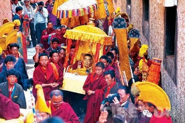 ཆུ་འབྲུག་ལོའི་ཟླ་བ་ ༥ ཚེས་ ༡ དང་། ཕྱི་ལོ་ ༡༩༥༢ ལོའི་ཟླ་བ་ ༦ ཚེས་ ༢༣ ཉིན་༸སྐྱབས་མགོན་ཀུན་གཟིགས་ཐམས་ཅད་མཁྱེན་པ་སྐུ་ཕྲེང་བཅུ་པ་ཆེན་པོ་མཆོག་དད་ལྡན་སེར་སྐྱ་ཁྲི་ཕྲག་མང་པོས་སེར་སྦྲེངས་དང་བཅས་གདན་ས་བཀྲ་ཤིས་ལྷུན་པོའི་བླ་བྲང་རྒྱལ་མཚན་མཐོན་པོའི་མི་འཇིགས་གདོང་ལྔས་བཏེགས་པའི་གསེར་ཁྲིར་མངའ་གསོལ་མཛད་པ་དང་། རྗེ་འདི་ཉིད་བླ་བྲང་རྒྱལ་མཚན་མཐོན་པོར་གཟིམ་ཆུང་མཇལ་ཁར་བཅར་བ་དང་༸སྐྱབས་མགོན་ཀུན་གཟིགས་༸པཎ་ཆེན་རིན་པོ་ཆེར་བདེ་མཆོག་རྩ་རྒྱུད་ལེའུ་ང་གཅིག་ཅན་ཆ་ཚང་བ་བློ་རྒྱུགས་ཕུལ་ནས་ཐུགས་ཤིན་ཏུ་མཉེས་པར་མཛད་ཅིང་། སྐབས་དེར་༸སྐྱབས་མགོན་ཀུན་གཟིགས་༸པཎ་ཆེན་སྐུ་ཕྲེང་བཅུ་པ་ཆེན་པོས་བྱ་བྲལ་སྐུ་གོང་མའི་ཡང་སྲིད་འཁྲུལ་བྲལ་དུ་ངོས་འཛིན་གཏན་འཁེལ་མཛད།
