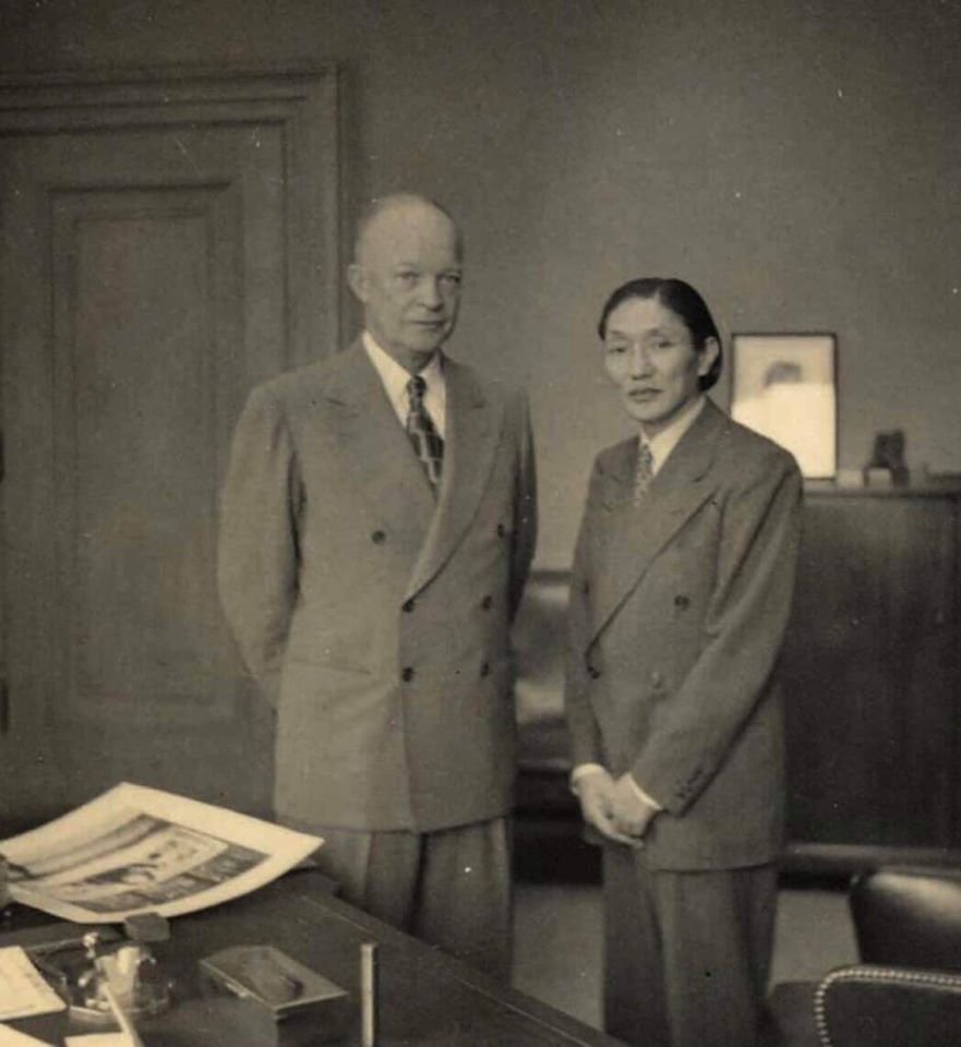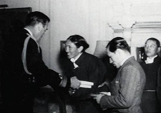 སྐུ་ཚབ་རྣམས་ནས་ཀོལམ་བི་ཡ་མཐོ་སློབ་ཀྱི་ཚོགས་གཙོ་གནང་མྱོང་ཞིང༌། དམག་ཆེན་གཉིས་པའི་སྐབས་དམག་སྤྱི་གནང་བ་ཕྱིས་སུ་ཨ་རིའི་སྲིད་འཛིན་དུ་བསྐོ་བཞག་བྱུང་བ་སྐུ་ཞབས་ General Dwight D. Eisenhower མཆོག་དང་མཇལ་འཕྲད་གནང་བ་དང༌། ཁོང་དེ་སྔོན་དམག་གི་སྐབས་ཨ་རིའི་གནམ་གྲུ་ཞིག་བོད་སར་འབབ་དགོས་བྱུང་སྐབས་གནམ་གྲུའི་ནང་ཡོད་པའི་མི་ལྔ་བོ་བོད་གཞུང་ནས་རོགས་རམས་གནང་བར་ཐུགས་རྗེ་ཆེ་ཞེས་སྐུ་ཚབ་ཚོར་ཞུ་སྐུར་གནང་བ་རེད། དེ་ནས་སྐུ་ཚབ་རྣམས་ནུབ་ཕྱོགས་བདེ་སྲུང་དམག་ཁང་གསར་འཛུགས་སྐྱོང་བྱས་པ་ཡོད་པ་དེར་གཟིགས་སྐོར་དུ་གདན་འདྲེན་ཞུས་ཤིང༌། དེར་བོད་དུ་ཕེབས་མྱོངས་ཡོད་པ་ Colonel Ilia Tolstoy དང་ Suydam Cutting སོགས་གྲོགས་པོ་སྙིང་པ་རྣམས་ཀྱིས་ཕེབས་བསུ་བྱས།