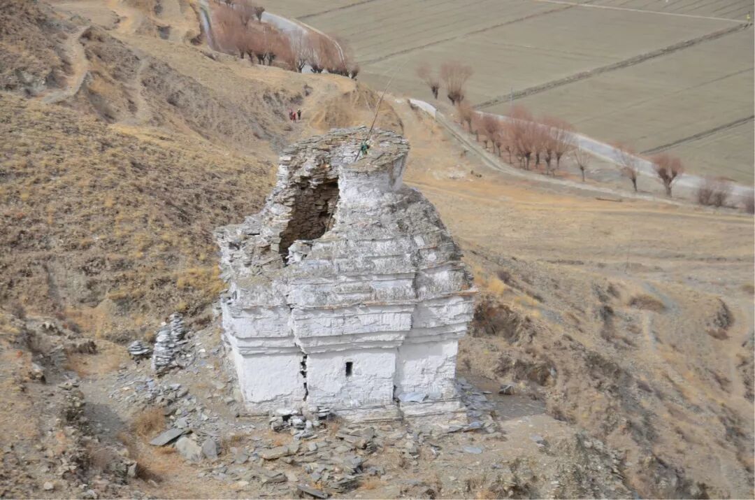 དུས་འགྱུར་གོང་དགོན་དེར་འདུ་ཁང་ཨ་མ་ཞེས་དང་། རྩེ་ཕོ་བྲང་། གཙུག་ལག་ཁང་། མ་ཎི་ལྷ་ཁང་སོགས་གཞི་ཁྱོན་ཧ་ཅང་ཆེན་པོ་ཡོད་པར་བཤད། ད་ལྟ་ཡང་ཕུག་པའི་སྟེང་ནས་ཡར་ཅུང་ཙམ་སོང་མཚམས་སུ་གནའ་བོའི་དགོན་རྙིང་གི་རྩིག་ཀོག་རྣམས་ཉམ་ཆག་རྩ་རྫོགས་སུ་མ་སོང་པར་ད་ལྟ་ཡང་ལྷག་འདུག