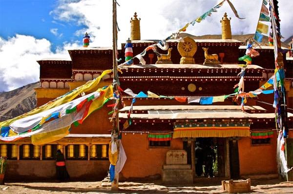 བོད་ཀྱི་མངའ་རིས་སྤུ་ཧྲེང་གི་འཁོར་ཆགས་དགོན་པ་ནི། ཕྱི་ལོ་ 996 ལོར་གངས་རིའི་ཁྲོད་ཀྱི་ཤིང་རྟའི་སྲོལ་འབྱེད་ལོ་ཙཱ་བ་རིན་ཆེན་བཟང་པོས་ (༩༥༨-༡༠༥༥) ཕྱག་བཏབ། འཁོར་ཆགས་དགོན་པ་ནི་སྤུ་ཧྲེང་རྫོང་ཁོངས་སུ་གནས་པ་དང་པུར་རྒྱལ་བཙན་པོའི་གདུང་རྒྱུད་ཀྱིས་དུས་རབས་ ༡༢ པའི་དུས་འགོར་བཞེངས། བཤད་རྒྱུན་ལས། དེའི་དུས་སུ་ཡུལ་ལུང་དེར་ཨ་ཙ་ར་ལུས་སྟོབས་དང་ལྡན་པ་བདུན་བྱུང་བ་དེ་དག་གིས་རྣམ་དཀར་དགེ་ལས་གཞོལ་ཞིང་། མ་ཐོན་གོང་ལ་རྒྱལ་པོར་དངུལ་ཁུག་མ་ཆེན་པོ་བདུན་ཕུལ་བར། རྒྱལ་པོས་ཡ་མཚན་དང་བཅས་ཏེ་བླ་མ་ལ་རྒྱུ་མཚན་ཞུས་པས། བླ་མའི་ཞལ་ནས་རྒྱལ་པོ་ཆེན་པོ་ཁྱེད་ནི་གནོད་སྦྱིན་ཨརྱ་ཛམ་བྷ་ལྷ་ཡིས་ཐུན་མོང་གི་དངོས་གྲུབ་སྟེར་བའི་སྤྲུལ་པ་ཡིན་ལ། ད་དངོས་པོ་ཆུད་མི་ཟ་ཞིང་འགྲོ་བ་རྣམས་བསོད་ནམས་གསོག་པའི་རྟེན་བཟང་པོ་བཞེངས་ཤིག་གསུངས་པར་རྒྱལ་པོས་ཀྱང་སྔོན་གྱི་ཐུགས་བསྐྱེད་རྗེས་དྲན་གྱིས་དཀར་དུང་དུ་མཁར་གོང་འོག་དང་།