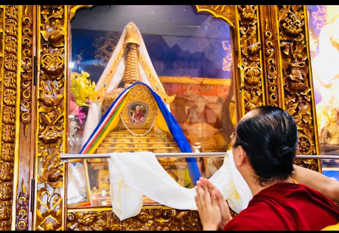 ༸རྗེ་བཙུན་བླ་མ་དམ་པ་འདི་ཉིད་ནས་རྒྱལ་བསྟན་འབའ་ཞིག་ཐུགས་ལ་དགོངས་ཤིང་། ཉིན་ཁར་མཚན་མཐུད་ཀྱིས་དཔེ་ཁྲིད་གནང་བར་མ་ཟད། ༸སྐྱབས་མགོན་༸རྒྱལ་བ་རིན་པོ་ཆེའི་མཚན་བརྗོད་པ་ཙམ་གྱིས་སྤྱན་ཞགས་འཁོར་བ་དང་། ཕྱི་ལོ་ ༢༠༠༦ ལོར་དཔལ་ལྡན་འབྲས་སྤུངས་སུ་དུས་འཁོར་དབང་ཆེན་གནང་སྐབས། ཕྱག་རྫས་ཡོངས་རྫོགས་༸སྐྱབས་མགོན་རིན་པོ་ཆེར་བརྟན་བཞུགས་སུ་ཕུལ་ཞིང་།