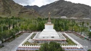 དེ་མིན་འབུམ་པ་དེའི་མཚན་གཞན་ལ་མཆོད་རྟེན་བཀྲ་ཤིས་འོད་འབར་ཞུ་བ་དང་།དེ་ཡང་ལྷའི་བུ་བཀྲ་ཤིས་དང་འོད་འབར་བྱ་བ་གཉིས་ཀྱིས་མཆོད་རྟེན་བཞེངས་གྲུབ་པའི་རྗེས་རབ་གནས་དང་འཁྲུས་གསོལ་མཛད་པ་དང་མཐར་ཆོད་རྟེན་ལ་དངོས་སུ་འཐིམས་པར་གྲགས་ཤིང་།དེ་ནས་མཁའ་འགྲོ་མ་སྟག་གི་རྣ་བ་ཅན་གྱིས་ནམ་མཁའ་ལས་ཕེབས་ཏེ་སླར་ཡང་རབ་གནས་འཁྲུས་གསོལ་མཛད་པ་དང་།ནམ་མཁར་འཕུར་ཁར་གར་སྟབས་མཛད་པའི་རྟིང་པ་ཀེར་ཤུལ་གྱི་ཞབས་རྗེས་གསལ་བའི་རང་བྱོན་ཞིག་དེང་སང་བར་དགོན་པའི་ནང་རྟེན་དུ་གསལ་བར་མཇལ་རྒྱུ་ཡོད།