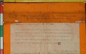 མེ་བྱ།(༡༩༥༧) གཉལ་སྡེ་ཁོངས་གྲ་འོར་དགོན་གྱིས་ཆོས་ཐེབས་སྐྱ་སྟོད་སྨད་བཟང་མདའ་བཅས་ཞིང་བདག་གྲྭ་ཚང་དང་། འདེབས་རྩ་སེར་སྐྱ་བཅས་ནས་སྤངས་(སྤང་)བླངས་(བླང་)གཡོ་མེད་ཞུ་གན་ཆེན་མོ་དགེའོ། མེ་བྱ་ཟླ་ཚེས་ལ། ཕན་བདེའི་འབྱུང་གནས་ལུགས་གཉིས་༸གོང་མ་ཁྲིམས་བདག་རིན་པོ་ཆེའི་༸ཞབས་དྲུང་དུད། ༅༅། །གཤམ་གསལ་ལྷུན་རྩེ་རྫོང་འོག་སྐྱ་སྟོད་སྨད་བཟང་གསུམ་ཁོ་སྟོང་ཁོའི་ས་ཞིང་རྣམས་གྲ་འོར་གྲྭ་ཚང་གི་མཆོད་ཐེབས་འཁྱོངས་བསྣོན་སྦྱིན་འཇགས་སྩལ་བར། བར་ལམ་མཆོད་རྒྱུན་བཏབ་སར་མ་སྨིན་པའི་དགེ་སྐྱོན་བྱུང་རིགས་ས་ལ་ལན་འདོམས་ཉེས་བཀོད་ཟུར་སོང་ཐོག ད་ཕྱིན་ས་ཞིང་བོགས་ལེན་འདེབས་འཛིན་བྱེད་པོས་གཉིས་མིའི་བོགས་སྤར་འབྲུ་འབབ་དུས་སྤྲོད་བྱེད་གན་དོན་ལྟར་མཆོད་རྒྱུན་རང་ལ་མིག་སྨན་མིག་ཕན་བྱ་རྒྱུར་ཚང་མས་བསམ་ཤེས་ཀྱི་འབྲི་འབབ་བོགས་འབྲུར་ས་རྡོ་ཞ་ཕུག་གི་བསྲེ་ལྷད་མེད་པ། ལོ་ལྟར་ཟླ་ཚེས་ ༩ ཚེས་ ༢༥ ཚུན་བསྡུ་དམ་ཐུན་མོང་གད་གཙང་དུས་ཐོག་སྤྲོད་ལེན་གླེང་མེད་བྱེད་པ་ལས། ཞེ་ཁོན་ཉག་ཁྲིའི་མཆོད་རྩར་སྔར་ལུགས་འགྲོ་བོ་ལམ་སྦྱངས་ཀྱི་ངན་བརྒལ་འདོད་བརྣག་ཁོག་བཅུག་རིགས་ཤར་ཚེ་སྐབས་སྦྱར། གྲྭ་ཚང་ནས་འདེབས་རྩ་འཕོ་བསྒྱུར་བྱ་འོད་སོགས་ཀྱི་རྒྱབ་གཉེར་འཇུག་གནོན་དགོས་རིགས། མཁན་སྡེདྲུག་ལས་འཛིན་ནས་དགོས་རྒྱུ་བཅས་དེ་དོན་ཚང་མས་བླང་དོར་འཛོལ་མེད་ཡོང་བ་བྱེད། ལྷོ་ཁུལ་སྤྱི་ཁྱབ་ལྷན་ཁང་ནས། ས་ཁྱི་(༡༩༥༨) ཟླ་ ༡ ཚེས་ ༢༩ ཚེས་ལ།